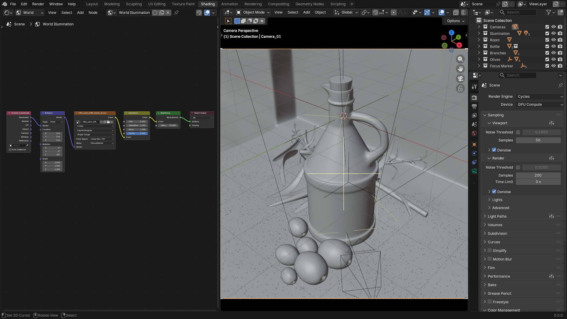 Blender / Cycles 200 samples - Material de vidrio con cáusticas falsas