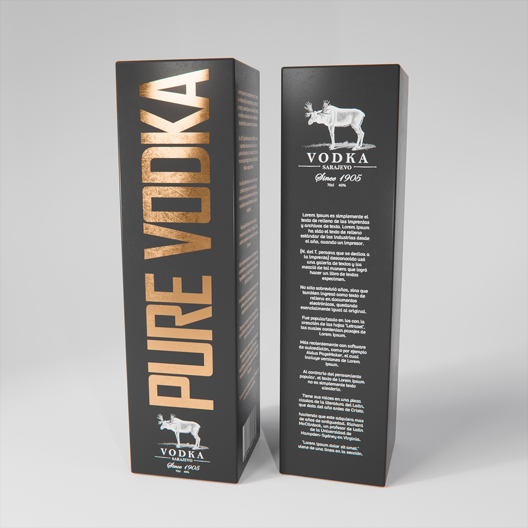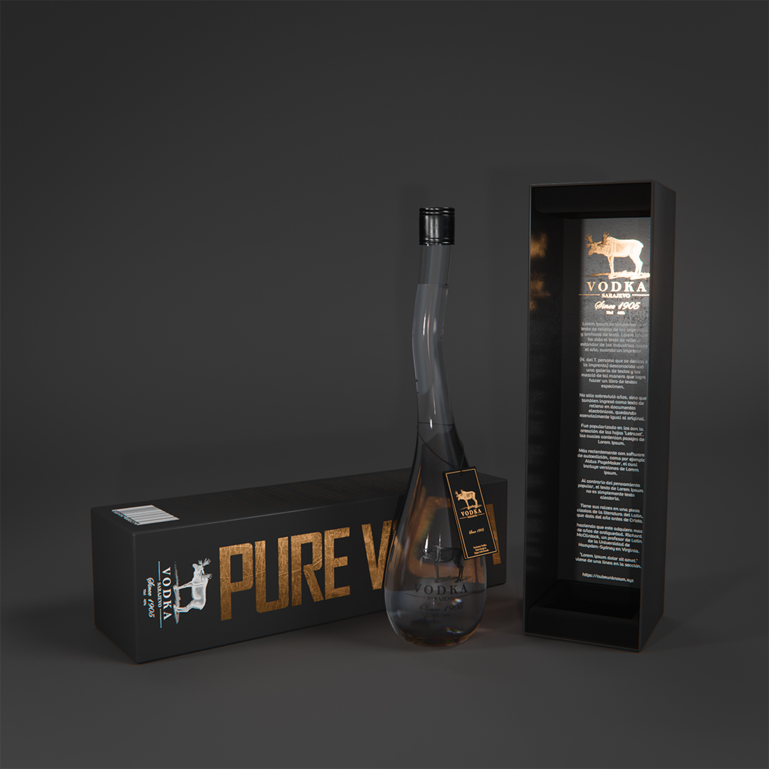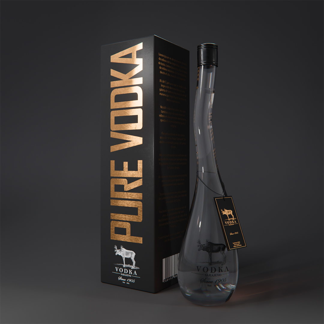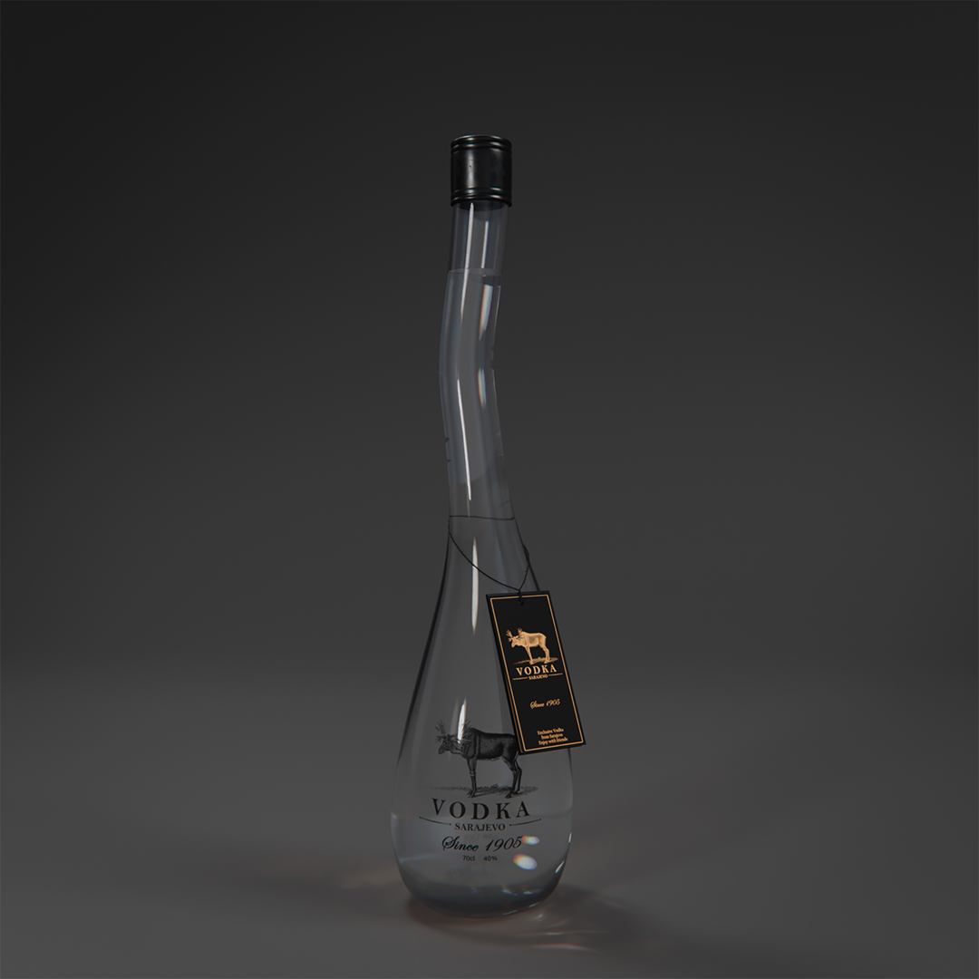 Blender / Cycles 200 samples - Botella de vodka con su empaque y cáusticas falsas