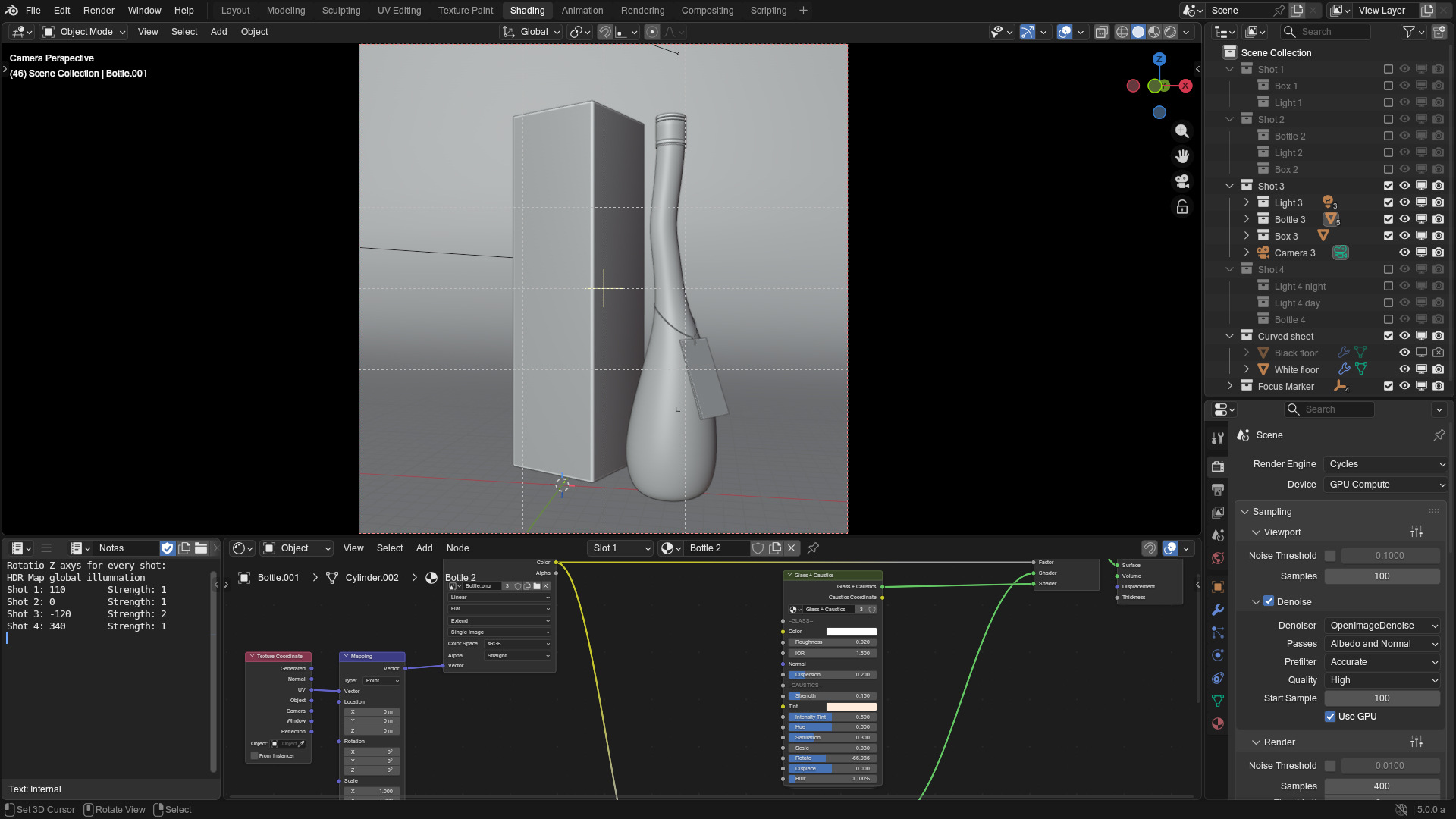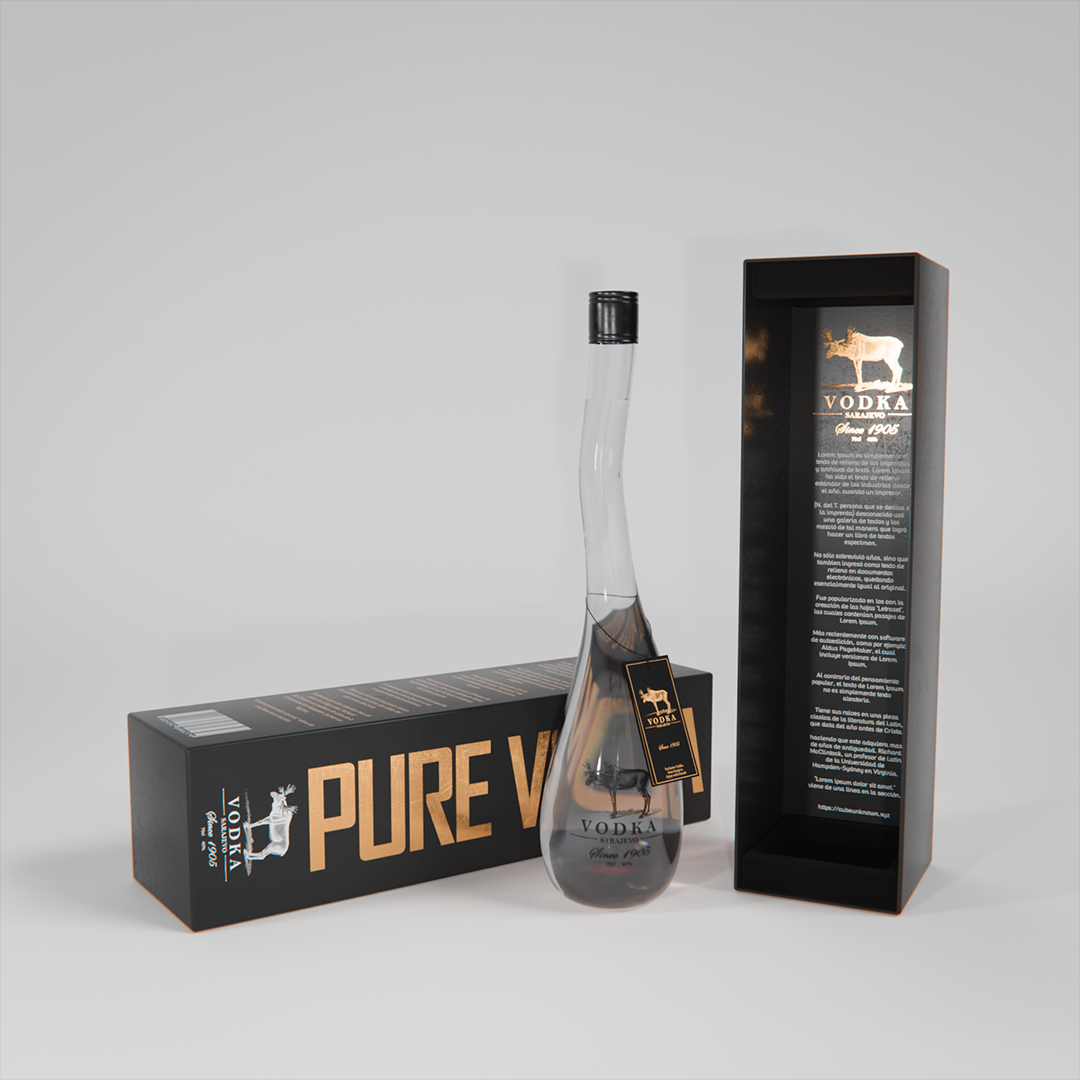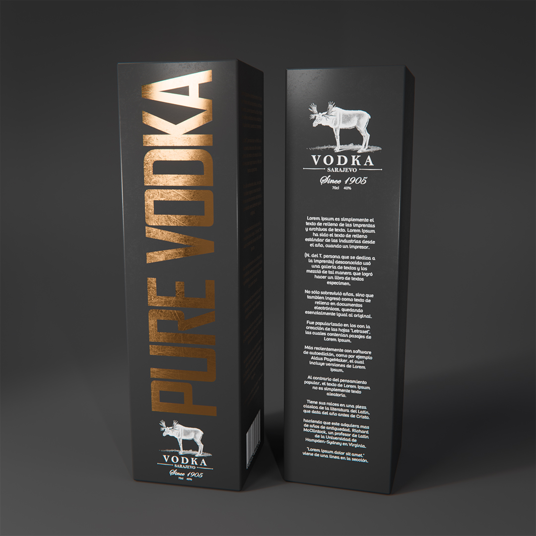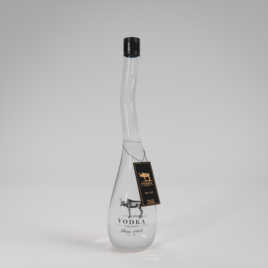 Blender / Cycles 200 samples - Botella de vodka con su empaque y cáusticas falsas