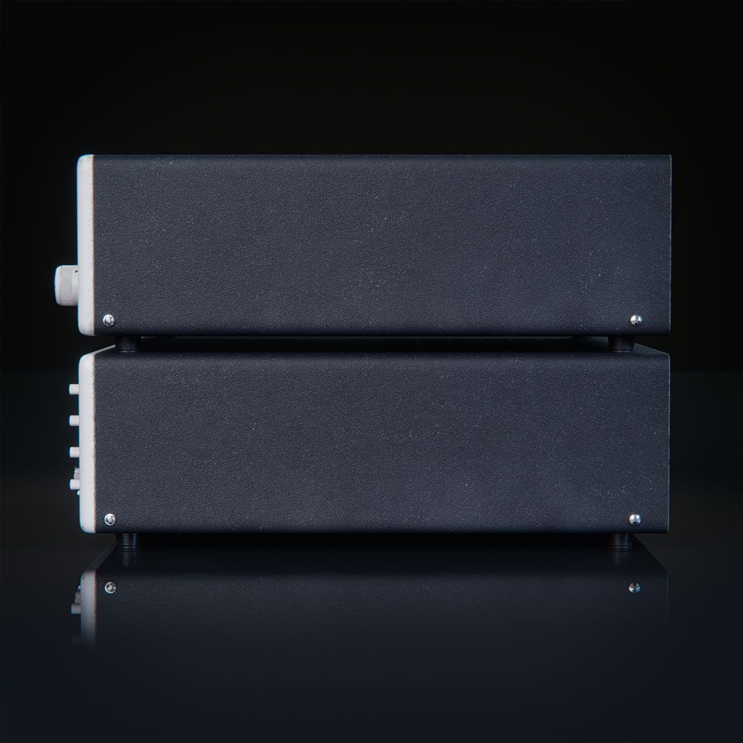 Archivo Blender 5.0 de un amplificador stereo HiFi (fan art). El proyecto cuenta con un escenario en un ambiente de studio con una iluminación controlada.