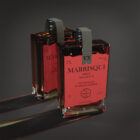 Archivo Blender 5.0 de una botella de licor, el material del vidrio incluye una configuración para reproducir cáusticas falsas al momento del render.