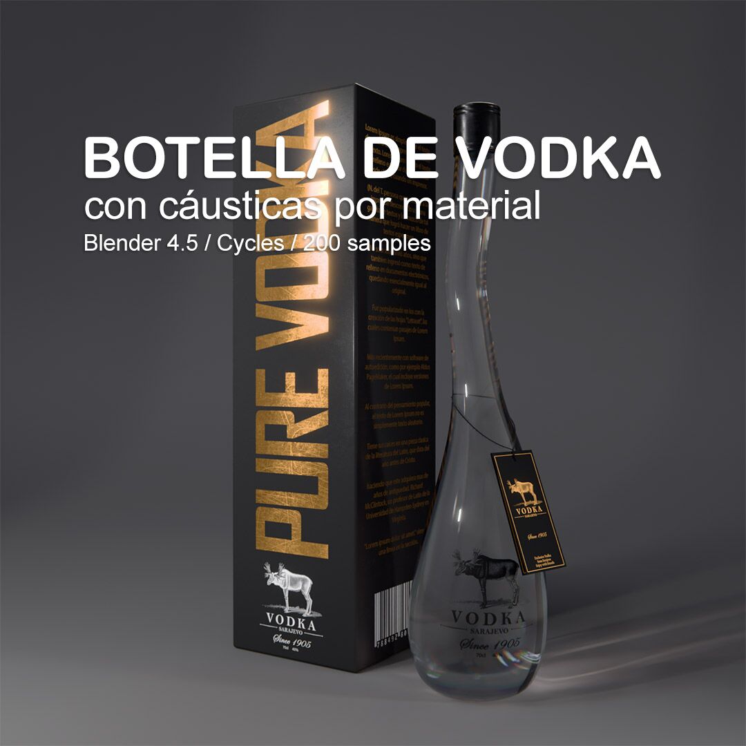 Archivo Blender 4.5 de una botella de Vodka. Los mapas UV están listos para que pongas tu diseño y crees presentaciones únicas. Incluye cáusticas falsas para crear renders más realistas.
