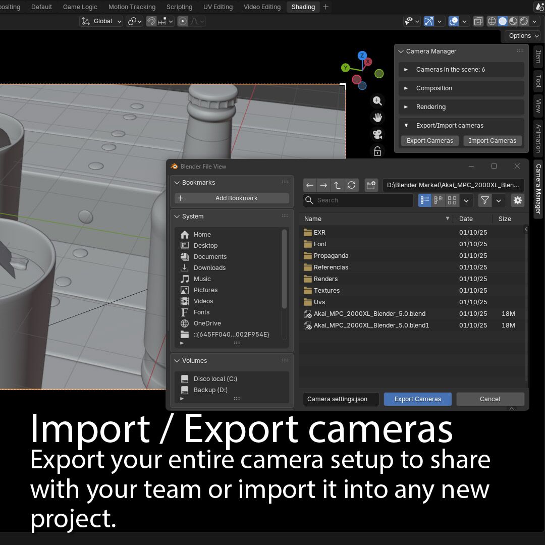 Este addon está diseñado para usar en Blender. Te permitirá controlar todas las cámaras que tengas en tu escena.