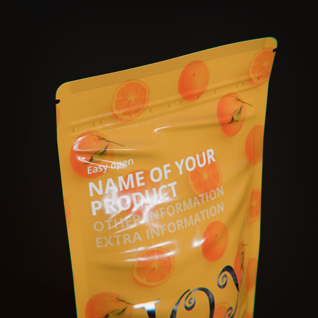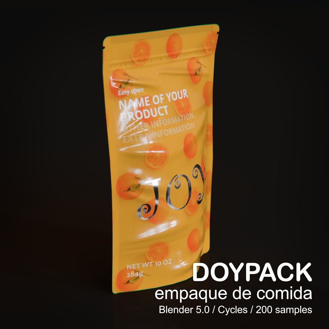 Archivo Blender 5.0 de un contenedor de alimentos (Doypack). Los mapas UV están listos para que pongas tu diseño y crees presentaciones únicas.
