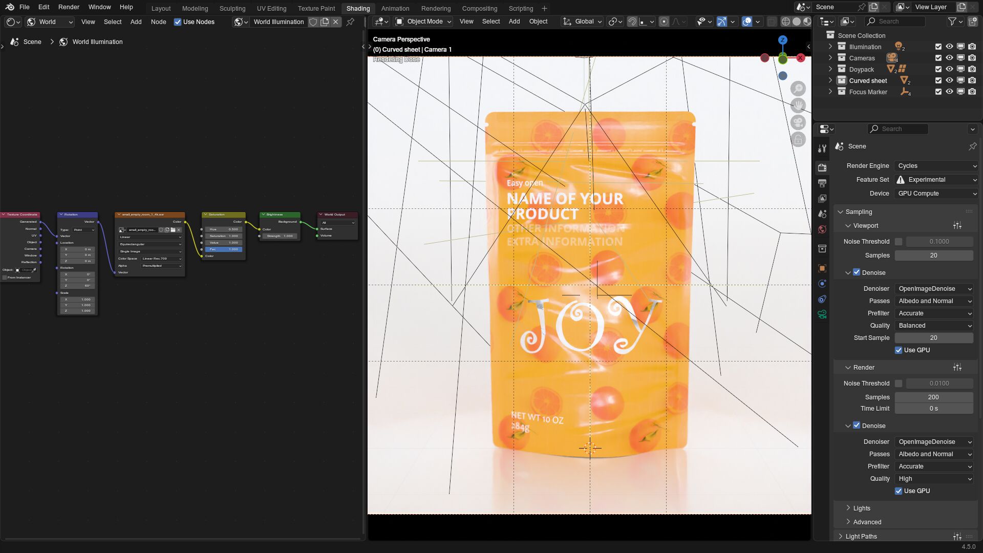 Archivo Blender 4.5 de un contenedor de alimentos (Doypack). Los mapas UV están listos para que pongas tu diseño y crees presentaciones únicas.