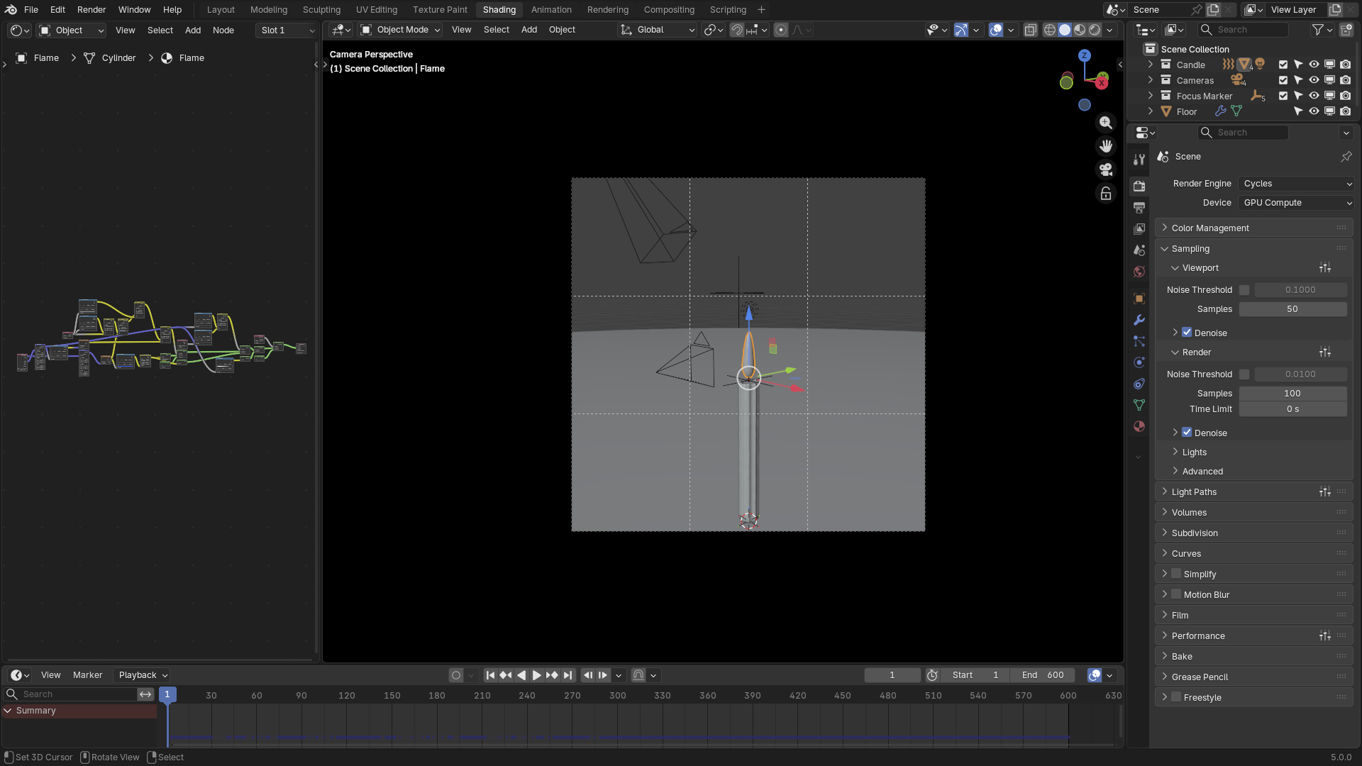 El archivo Blender contiene: mallas, iluminación y post producción hecha desde el Compositing de Blender. El motor de render es Cycles a 100 samples. Todo está organizado dentro de contenedores para una fácil manipulación.